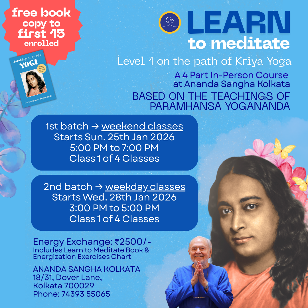 Learn more: https://anandakolkata.org/learn-to-meditate-jan-26/